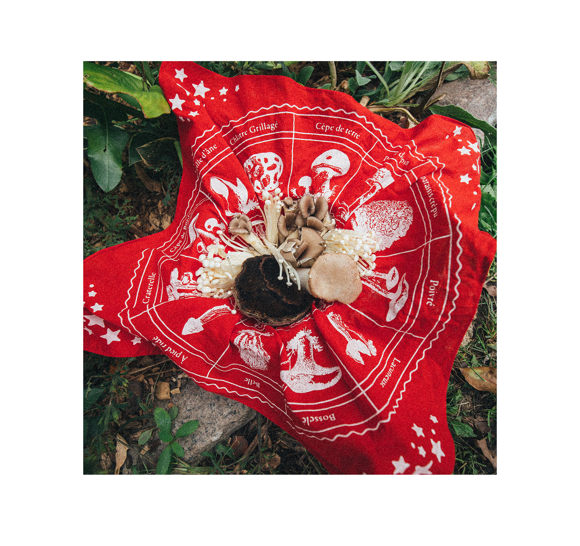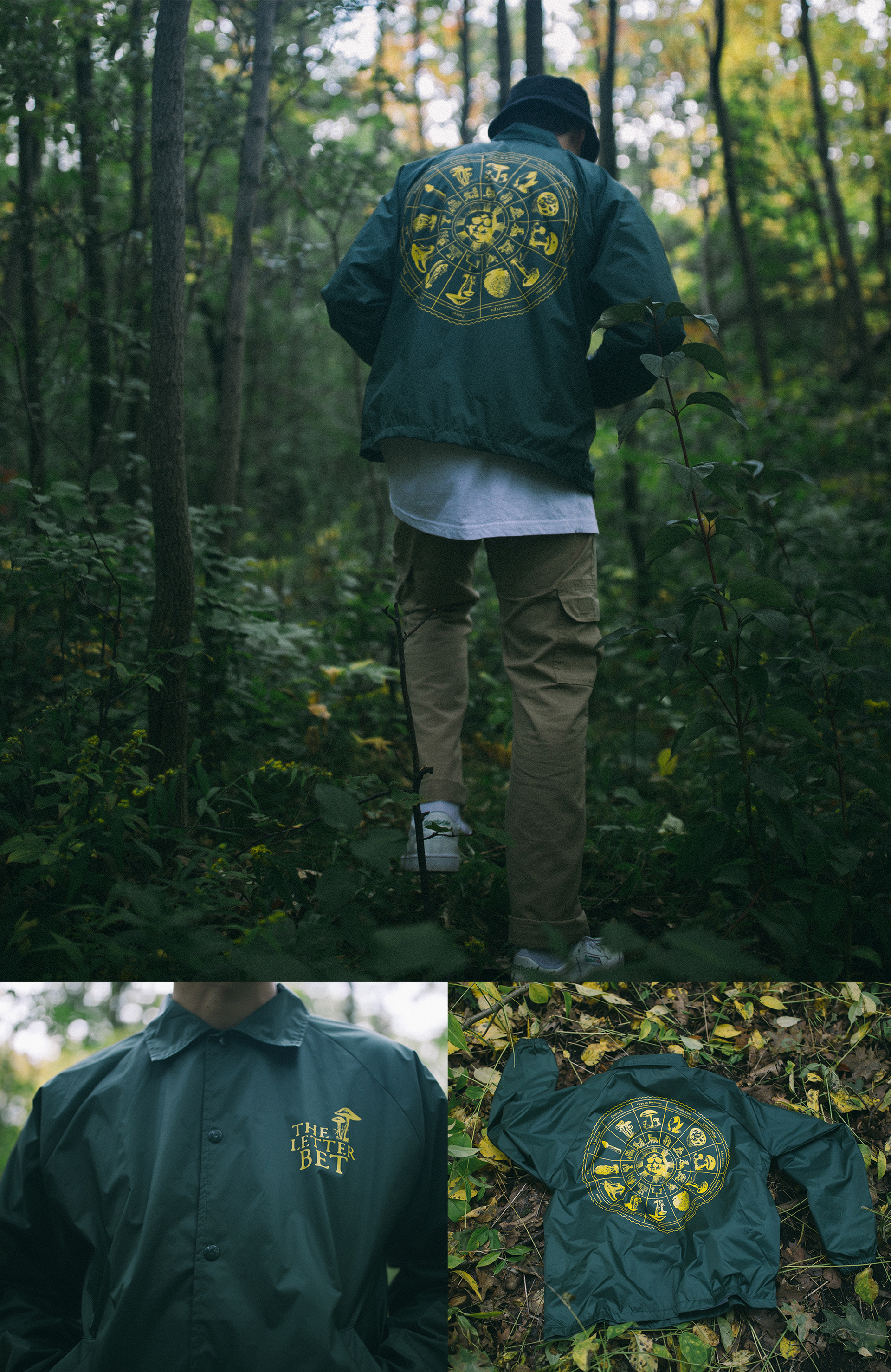 The collection includes a mushroom Scarf and a forest green Life Coach Jacket.